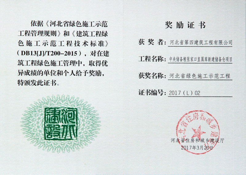 河北省绿色施工示范工